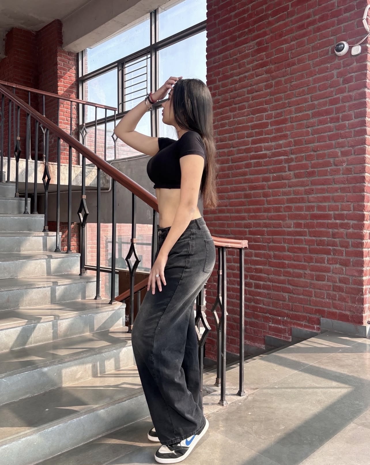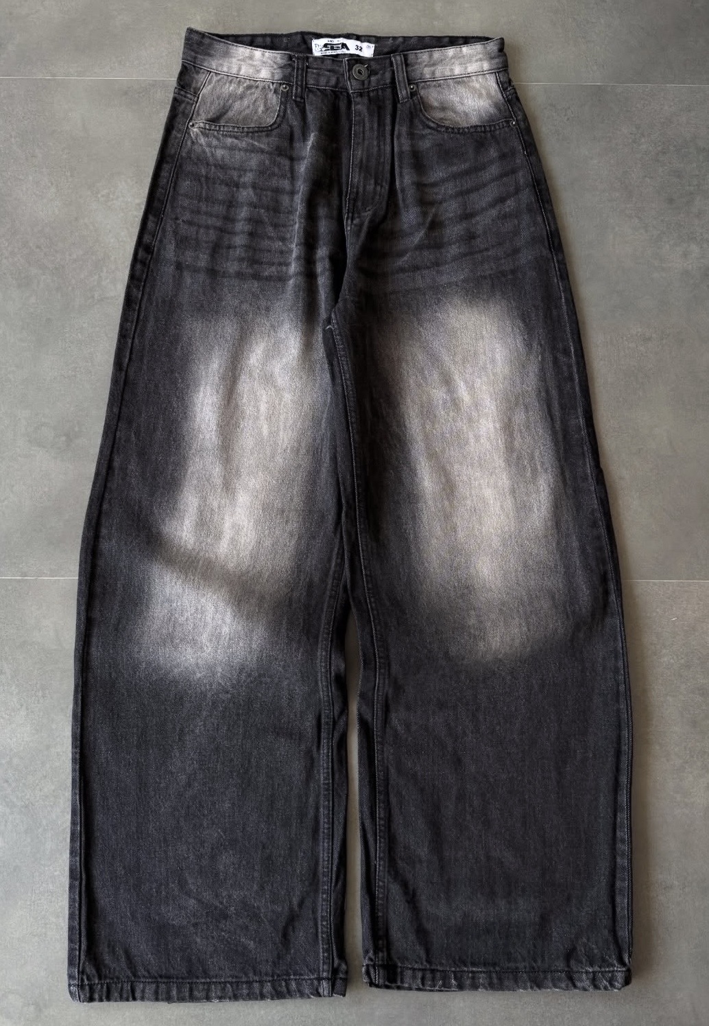 Super high waist jeans – black with white tint – wide baggy fit – unisex fit – total length of 43-44 inch